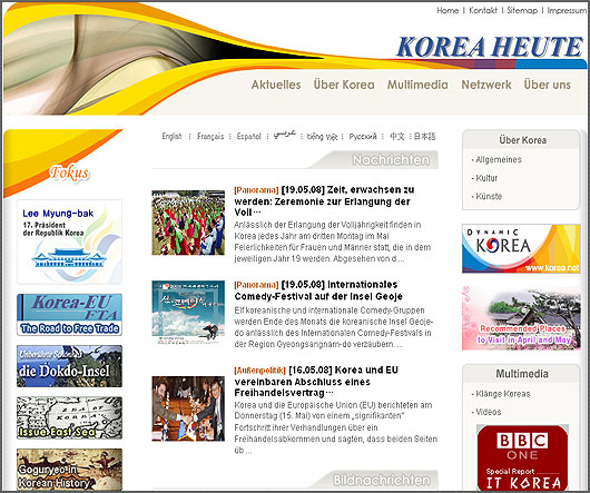 Korea.net ist die offizielle englisch-sprachige Website der südkoreanischen Regierung und wird von KOIS, dem Korean Culture and Information Service, bereitgestellt. Korea.net dient als Tor zu Informationen über Korea und bietet Ihnen ein für Ihre Suche angenehmes und benutzerfreundliches Umfeld. & ...